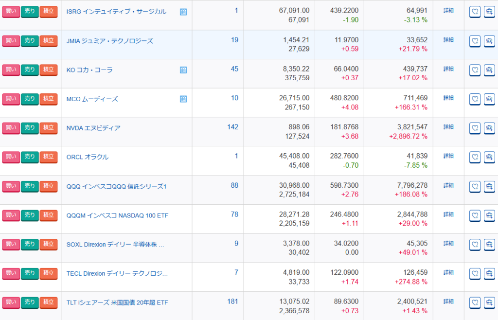 オラクルをウォッチ用に1株とジュミアテクノロジーズを短期売買用でちょっとだけ遊び。