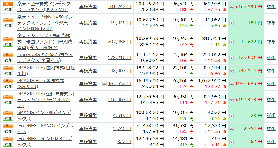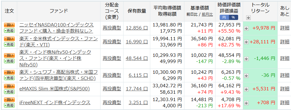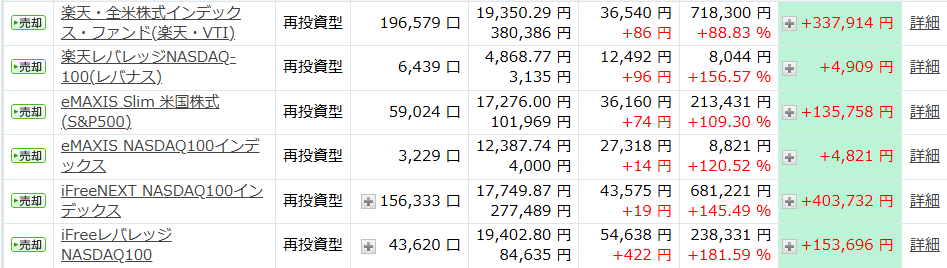 あと、わたしはインデックス投資がほとんどですのでまあまあです。